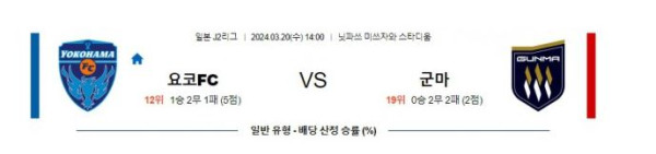 - 군마보다 수비력 안정적인 요코하마FC 승리 가능성 높음