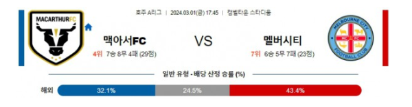 맥아서 멜버른시티 호주A리그분석 국내스포츠 3월1일