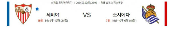 세비야 소시에다드 프리메라리가분석 해외스포츠 3월2일