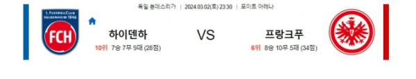 하이덴하임 프랑크푸르트 분데스리가분석 해외스포츠 3월2일