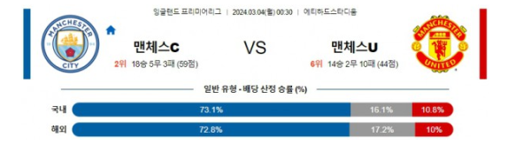 맨시티 맨유 프리미어리그분석 해외스포츠 3월4일