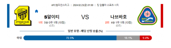 [주요경기] 알이티하드 나브바호르 AFC챔피언스리그분석 해외스포츠 2월23일