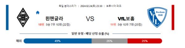 묀헨글라트바흐 보훔 분데스리가분석 해외스포츠 무료중계 2월24일