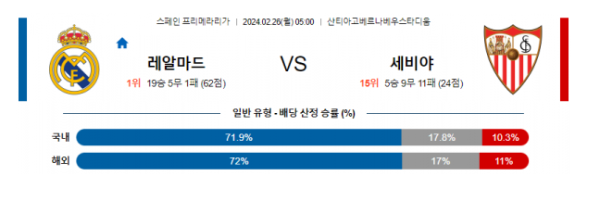 레알마드리드 세비야 프리메라리가분석 해외스포츠 2월26일