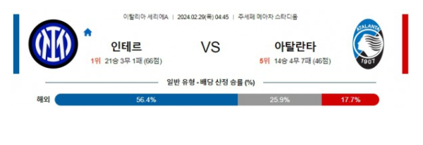 인테르 아탈란타 세리에A분석 해외스포츠 2월29일