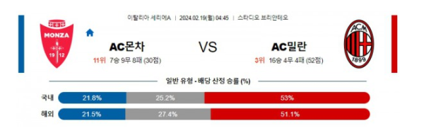 몬차 AC밀란 세리에A분석 해외스포츠 2월19일