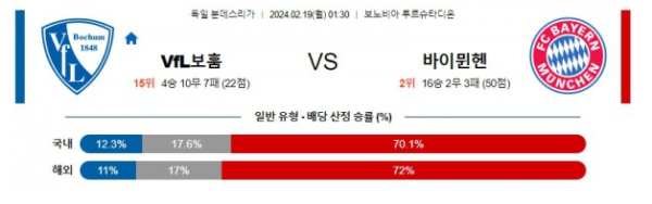 보훔 바이에른뮌헨 분데스리가분석 해외스포츠 2월19일