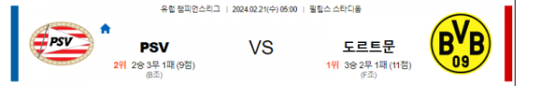 아인트호벤 도르트문트 챔피언스리그분석 해외스포츠 2월21일