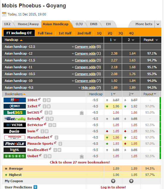 예를 들어 설명해드리자면 초기 배당이 1.5 배에서 시작하여 1.3 배까지 급격히 하락했다가 경기가 다가올수록 1.3 배~1.4 배에서
