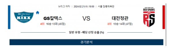 GS칼텍스 대전정관 V리그 자배구분석 국내스포츠 2월21일