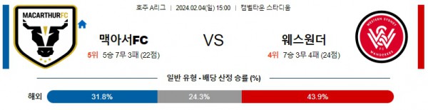 맥아서 웨스턴시드니 호주A리그분석 해외스포츠 2월4일