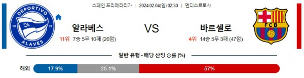 알라베스 바르셀로나 프리메라리가분석 해외스포츠 2월4일