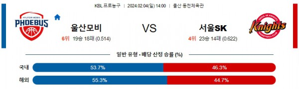 KBL 울산모비스 서울sk 국내농구분석 스포츠분석 2월4일