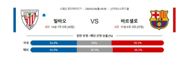 빌바오 바르셀로나 프리메라리가분석 해외스포츠 3월4일