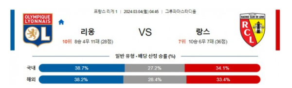 리옹 랑스 리게1리그분석 해외스포츠 3월4일