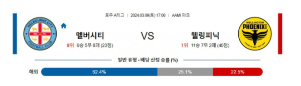 멜버른 시티 vs 웰링턴 경기 분석 및 베팅 추천