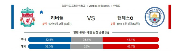- 하지만 리버풀도 공격력이 강력하며 무승부 가능성도 존재