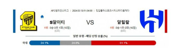 알이티하드 vs 알힐랄 경기 분석 및 베팅 추천