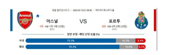 - 앞선 상대 전적: 아스날 1승 0무 2패 (포르투 우세)