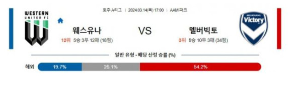 웨스턴유나이티드 vs 멜버른빅토리 경기 분석 및 베팅 추천