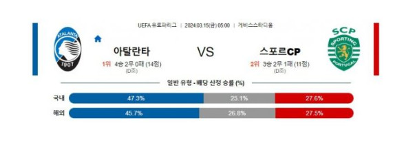 아탈란타 vs 스포르팅 경기 분석 및 베팅 추천