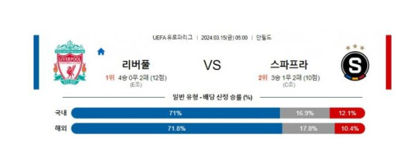 리버풀 vs 스파르타 프라하 경기 분석 및 베팅 추천