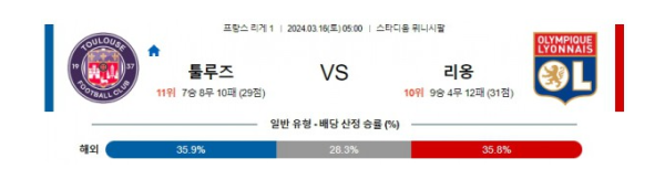 툴루즈 vs 리옹 경기 분석 및 예상