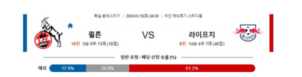 쾰른 vs 라이프치히 경기 분석 및 예상