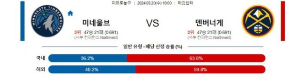 미네소타 vs 덴버 경기 예상 분석 및 베팅 제안