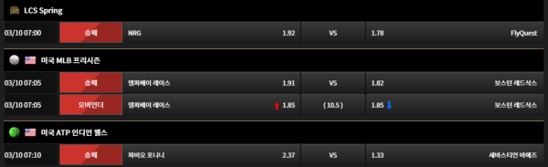 롤 , MLB 프리시즌 언옵, 테니스 등등 축구 야구 농구 제외하고도 많은 경기들 업데이트중