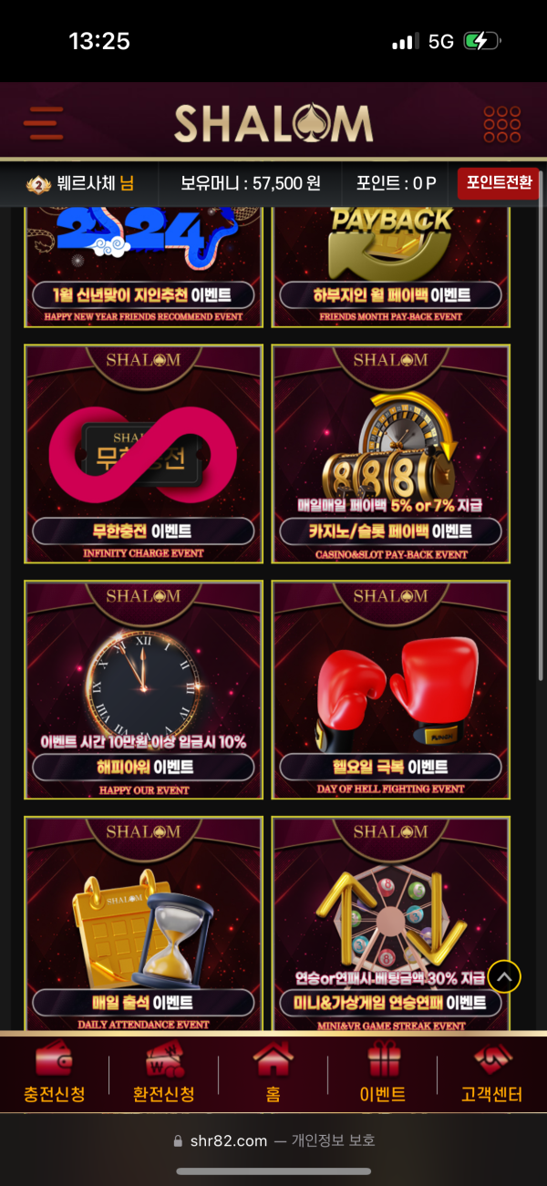 샬 롬 후기 제가 너무나도 자주 이용하는 사이트 입니다 이용내역 많다고 담달 바로 식사비 챙겨주고 새해라고 식사비 챙겨주고 이벤트도 많습니다 특히 정규 이벤트도 항시 진행중이니 놀러와서 이용 한 번씩 해보십셔 충환은 뭐 말 할것도 없네요 ㅎ