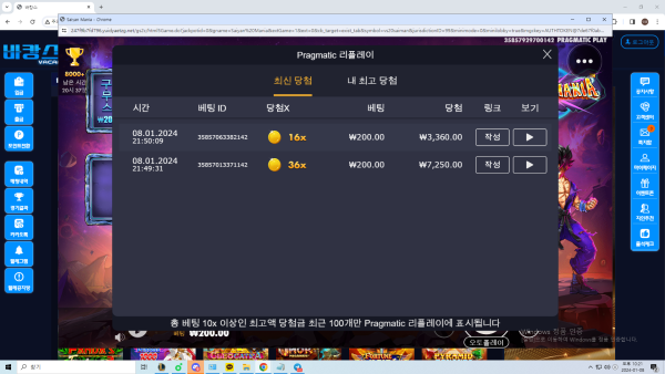 200원짜리 슬롯 보통 돌리는데 돌린지 5분도 안돼서 짤짤이 잘나옵니다