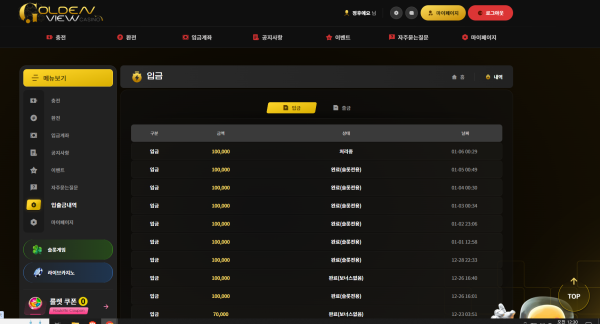 그리고 이벤트도다양하고 10만원이하로는 롤링 50프로만채우면 환전도가능하다는게 메리트가있네요