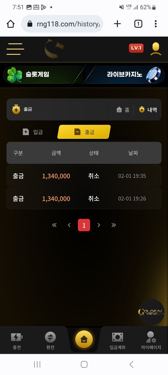 2주전에 30충전해서 134만원 환전하려고 했더니